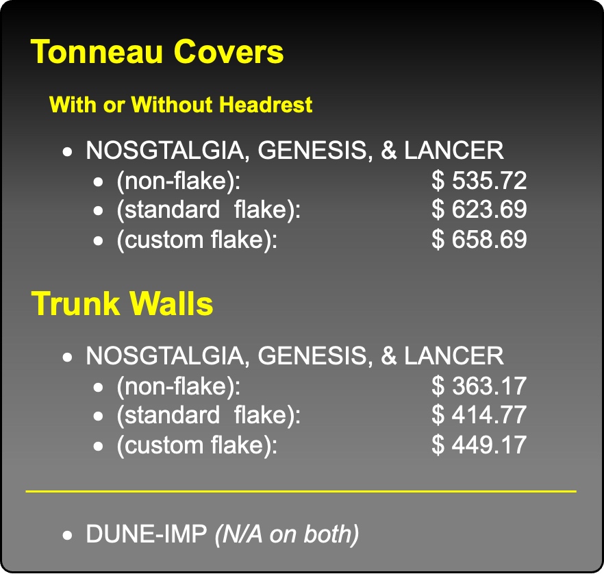 SidePods, Tonneau Covers, Soft Tops, other body parts…