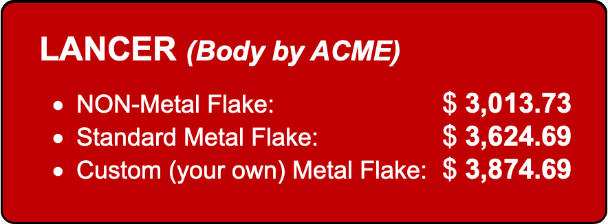 Below are ACME’s standard body color options for both metal flake, non-metal flake and custom (your own creation) metal flake colors.
